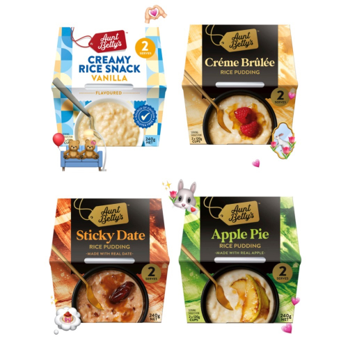每次都能體驗到絲滑的米布丁和令人無法抗拒的一匙美味, 帶來奢華的融合。 Aunt Betty's 將這款經典甜點演繹得 淋漓盡致,帶來入口即化的奶油風味。無論您是想在晚餐後享用一頓 奢華的犒勞,還是計劃一場難忘的聚會,我們的奶油米布丁都 能滿足您的味蕾。 Aunt Betty's 以上等食材精心製作, 確保每一口都風味濃鬱,口感細膩順滑。為您的甜點體驗增添一 絲優雅與傳統氣息。完美分量,方便取用,隨時享用,享受純粹 的享受。