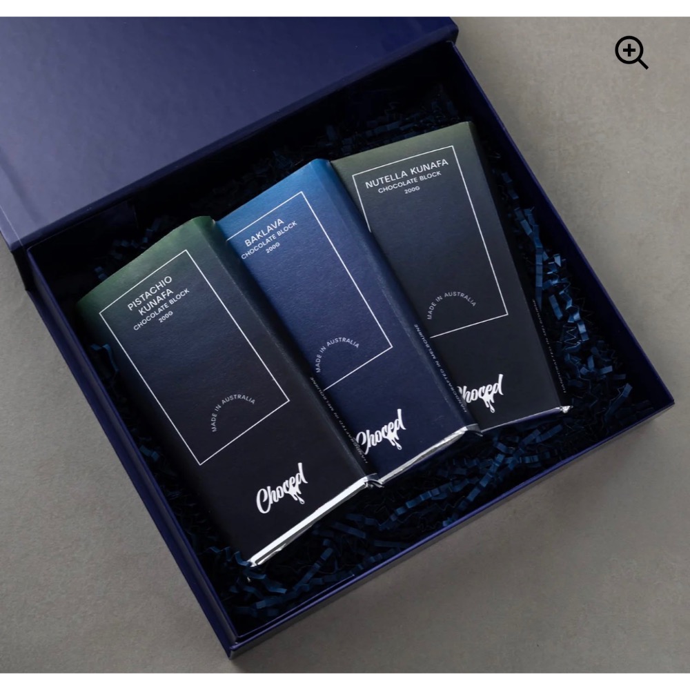 這三款巧克力均採用 Choced 高級禮盒包裝,盒身堅固耐用,配有磁扣、絲帶和 Choced 標誌性封條,是饋贈親友或自用的理想之選。從層層堅果香的 果仁蜜餅,到濃鬱順滑的 Nutella Kunafa,再到清爽優雅的開心果 Kunafa,這一系列為您帶來一段令人難忘的味覺之旅。