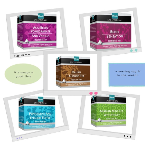 義大利杏仁錫蘭茶: 一款麥芽香濃鬱、產自中海拔錫蘭的精品茶,與義大利杏仁 微苦微甜的芳香完美融合。這款中等濃度的紅茶香氣宜人, 餘韻微甜。 巴西莓果石榴茶: 明亮優雅的純正錫蘭高地花卉BOP茶,與酸甜交織,偶爾夾雜 著巴西莓和石榴的巧克力香氣,完美融合。一絲淡淡的香草 氣息,柔化了口感,帶來舒適愜意、美味又誘人的茶飲體驗。 莓果錫蘭茶: 產自錫蘭高原的單一產區茶,融合了草莓、覆盆子和藍莓 的果香。複雜的風味與莓果的完美結合,帶來令人愉悅的輕盈 芬芳,可熱飲或冰飲。 太妃糖錫蘭茶: 錫蘭茶的美味與濃鬱的英式太妃糖香醇融合,並以閃亮的薄荷 收尾。獨特的組合,成就了這款複雜而感性的茶飲。 阿拉伯薄荷茶與蜂蜜: 這款茶飲清爽怡人,由單一莊園錫蘭紅茶與清爽芬芳的薄荷 完美融合。一絲蜂蜜的點綴,讓這款美味、活力、清爽的茶飲更加 完美。
