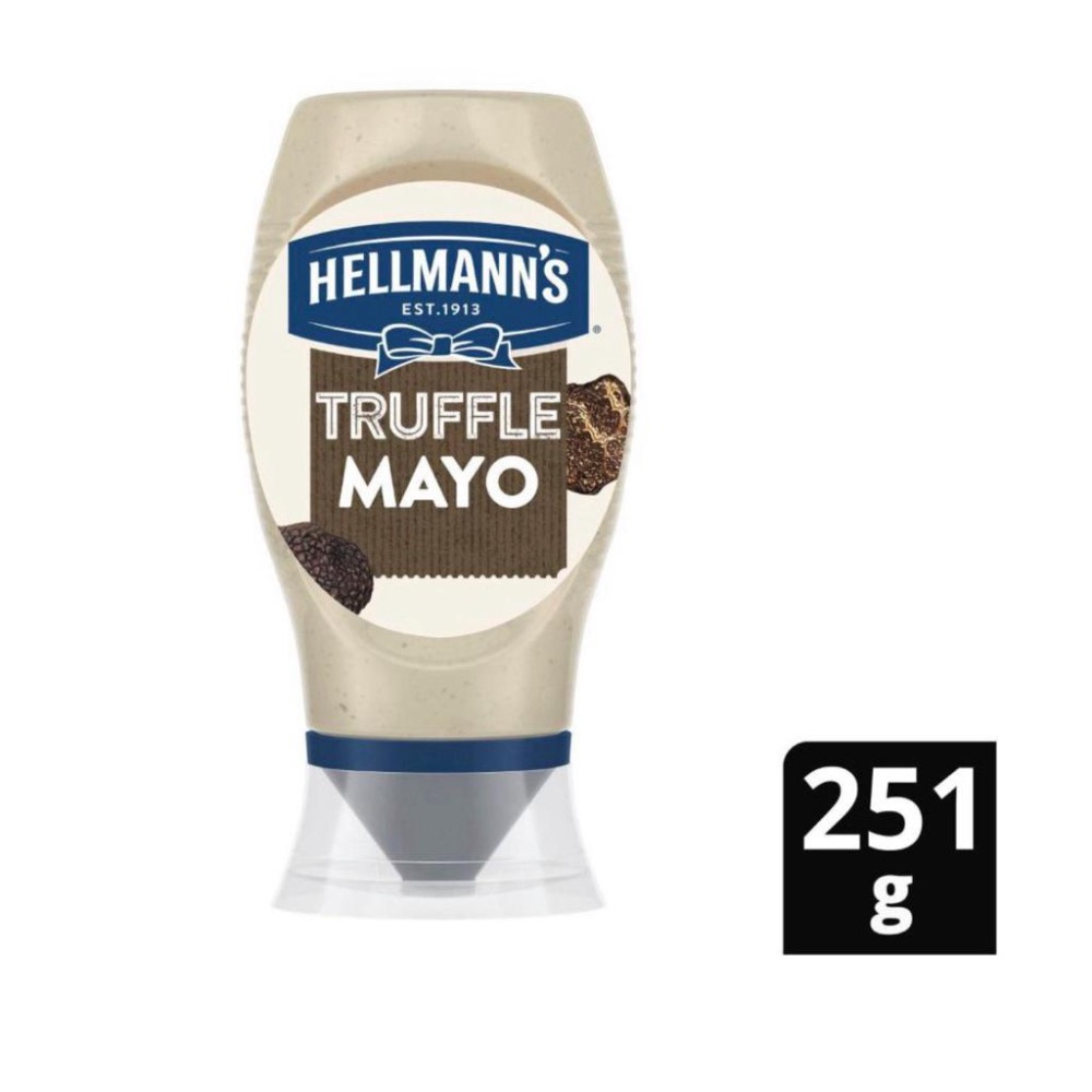 無論您是經驗豐富的廚師,還是勇於嘗試的家庭廚師, Hellmann's 松露蛋黃醬都能為您的菜餚增添一抹美食氣息。濃鬱 的天然松露與全蛋的融合,創造出獨一無二的美味和令人 無法抗拒的柔滑口感,讓您的食物更加美味。無論您是想用來 裝飾三明治、提升沙拉的口感,還是為您的招牌漢堡增添奢華 的風味,這款柔滑的蛋黃醬都是提升經典菜餚檔次的 秘密武器。 一百多年前,理查德·赫爾曼 (Richard Hellmann) 在紐約的熟食店 發明了赫爾曼蛋黃醬,並用一條藍色絲帶標記他的 最佳產品。這條藍絲帶至今仍懸掛在我們的標籤上,象徵著 我們對高品質產品的持續承諾。長期以來,我們始終 致力於永續農業、負責任的經營,並善待那些幫助我們生產 赫爾曼蛋黃醬的人。這不僅是因為我們認為這能提升我們 的產品品質,更因為這是正確的做法。 有了我們便利的擠壓式包裝,您甚至可以擠出蛋黃醬瓶中最後 一滴!我們的松露蛋黃醬適合素食者,並採用再生塑膠瓶 包裝。 Hellmann's。盡享美味。 Hellmann's 松露蛋黃醬以 獨特的美味和令人無法抗拒的絲滑口感,讓您的食物更上一 層樓。