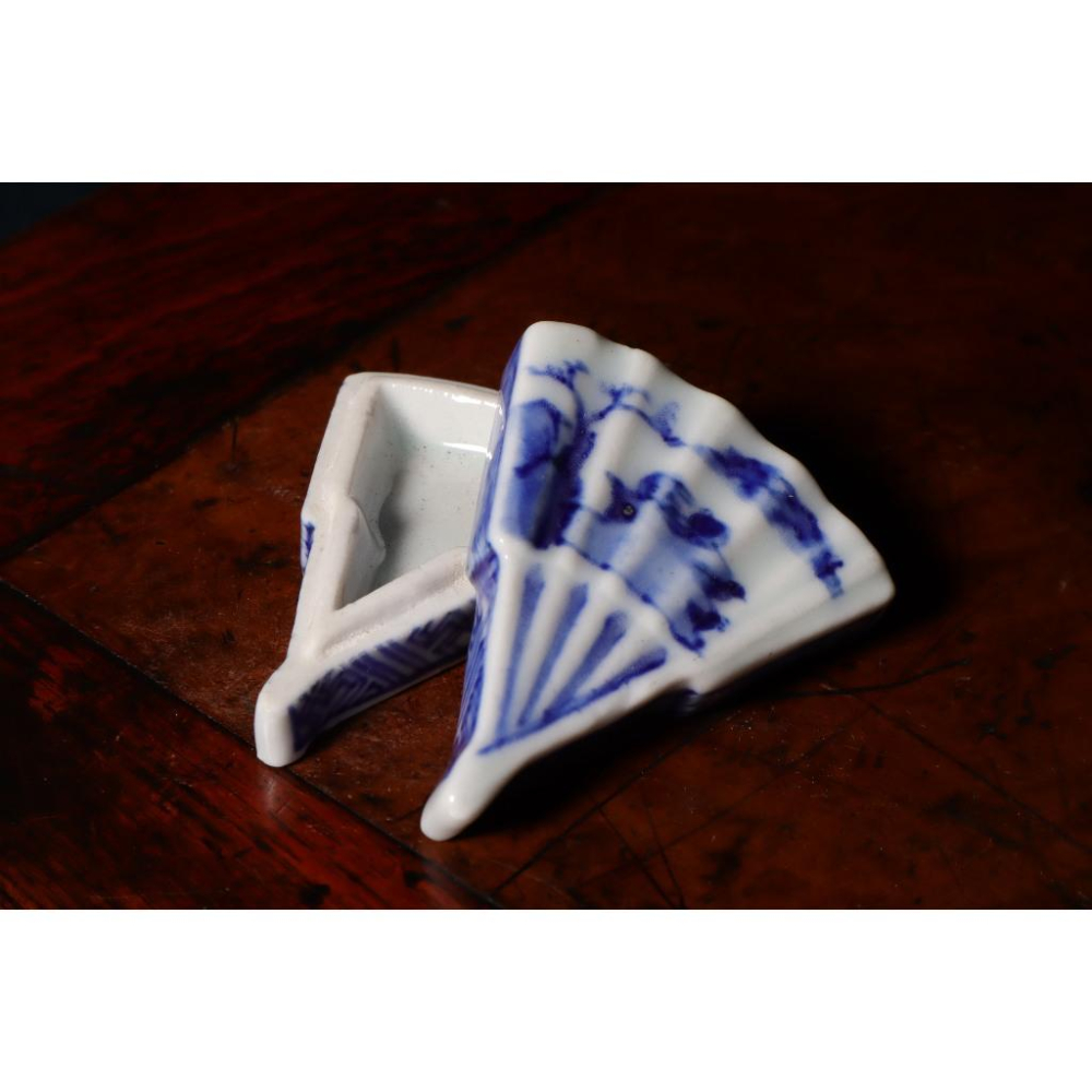 《部町》日本 大明成化年款 青花扇形香盒 長度|4.5CM 寬度|5.5CM 高度|2CM #茶碗 #京都 #抹茶 #日本 #神社 #茶道 #古董 #花藝 #部町 H188