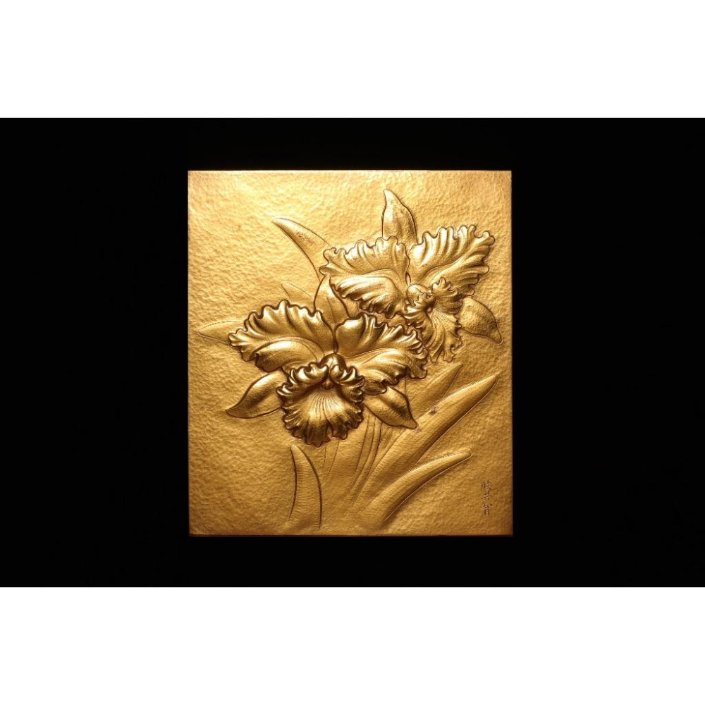 《部町》日本 人間國寶 金森 映井智 雕金 鳶尾花 銅版畫|抹茶 茶道具 茶道 花道 花藝 神社 京都 古董 茶碗 茶杯