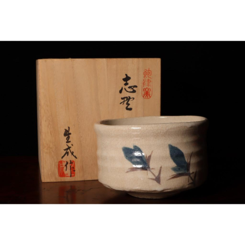 《部町》日本 飽津窯 宮地生成造 繪龍膽 志野抹茶碗 附木箱 直徑|12CM 高度|7.5CM 年代|昭和時代 #茶碗 #京都 #抹茶 #日本 #神社 #茶道 #古董 #花藝 #部町 D527