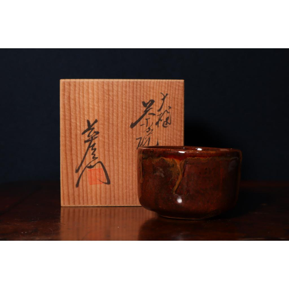 《部町》日本 長洛窯 大樋燒 手造 湯吞杯 附木盒 直徑|7.5CM 高度|5CM 年代|昭和時代 #茶碗 #京都 #抹茶 #日本 #神社 #茶道 #古董 #花藝 #部町