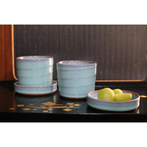 《部町》日本 手造 海鼠釉 湯吞杯 茶杯 附杯墊 一組|抹茶 茶道具 茶道 花道 花藝 神社 茶碗 茶葉 京都 布丁杯