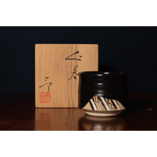 《部町》日本 背戶窯二十二代目 瀨戶名家 加藤令吉 手造湯吞杯 附木盒 直徑|6.5CM 高度|5.5CM 年代|昭和時代 介紹|加藤令吉で二十二代目の背戸窯は、慶長年間に、初祖(景長藤左衛門、壮年の頃背戸次郎と款した)が開窯して以来、四五〇余年続く、瀬戸、赤津焼の窯元だ。瀬戸市の赤津地区に位置するアトリエの内玄関へのアプローチには、加藤の彩釉陶面などが配置され、不思議な空間となっている。アトリエは轆轤などが並ぶ仕事場と、祖父・父・加藤自身の作品や古代オリエントの考古遺物のコレクションなどが並ぶギャラリーに分かれている。  昭和二十八年に令吉が生まれて、一家は跡取りが出来たことをなにより喜んだ。加藤が幼いころは、祖父丈助が七〇代で、父釥も今の加藤よりも若く、三代同居だった。そのような家庭環境の中、ごく自然に窯を継ぐということが加藤の中に組み込まれていった。また、瀬戸という土地柄、当時の市内の小学校にはすべて窯があって、教育の一環として陶器つくりがあった。 #茶碗 #京都 #抹茶 #日本 #神社 #茶道 #古董 #花藝 #部町