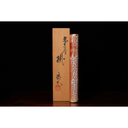 《部町》日本 志野名家 佐藤康元 掛花入 花器 附木箱 直徑|3CM 高度|22.5CM 年代|昭和時代 #茶碗 #京都 #抹茶 #日本 #神社 #茶道 #古董 #花藝 #部町