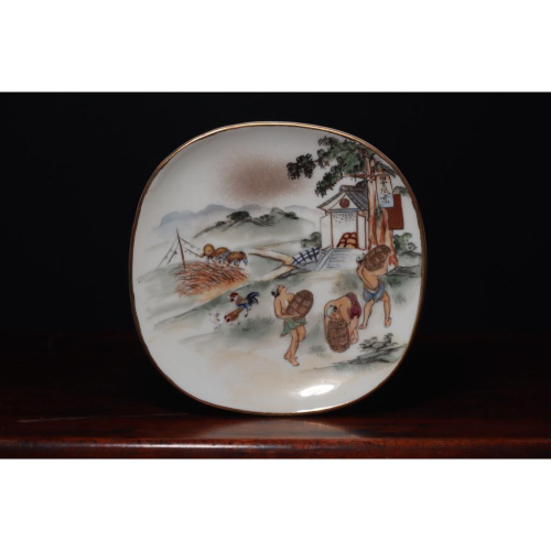《部町》日本九谷描金 浮世繪 北齋風格 田舍風光 賞盤 長寬|15.5CM 高度|2.5CM 年代|大正時代 #茶碗 #京都 #抹茶 #日本 #神社 #茶道 #古董 #花藝 #部町