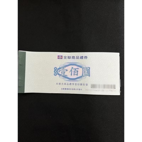 全聯禮劵面額100元1本10張
