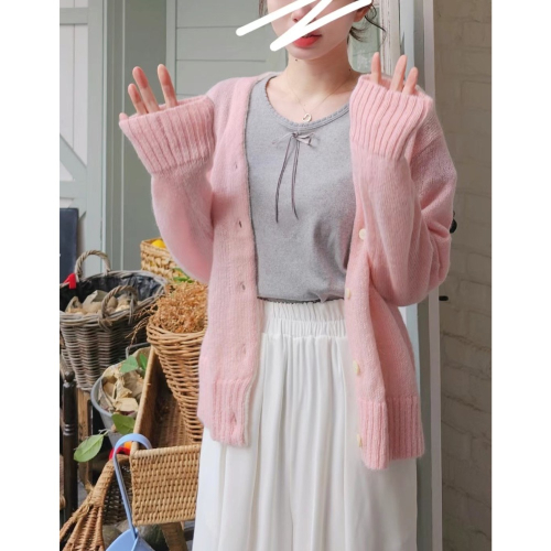韓妞最愛的甜妹風🌷胸口和袖口都有花瓣邊,細絨蝴蝶結綁帶,下擺木耳捲邊,滿滿細節~