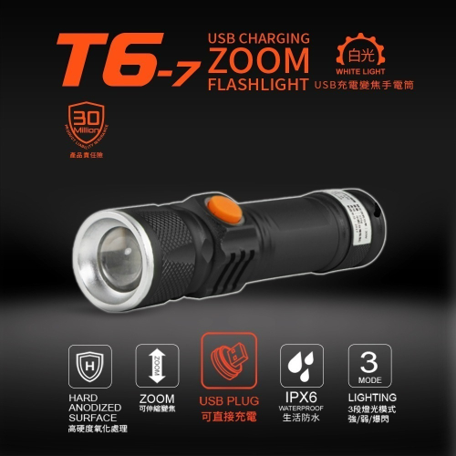 •美國進口T6燈珠,最高亮度1100流明,使用壽命達10萬小時。