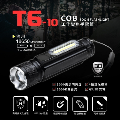 • 美國進口T6燈珠,最高亮度1000流明,使用壽命達10萬小時。