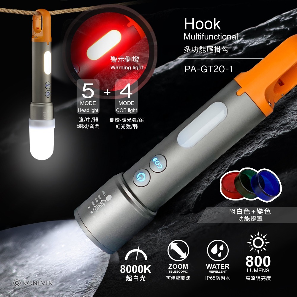 • 配置掛勾設計,搭配顏色燈罩,多用途功能應用。