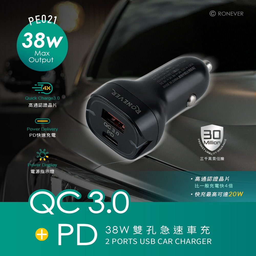 • 獨立USB電路設計QC+PD,可同時為兩種設備充電,總功率可達38W。