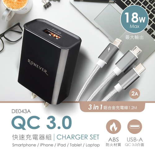 • 鋁合金三合一充電線,可同步進行充電與數據傳輸。