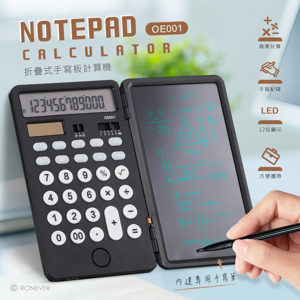 • 液晶手寫板設計,可同時計算及手寫紀錄,內含手寫筆,一鍵清除按鈕。