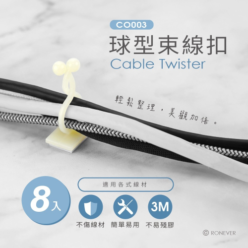 4.將要收納線材放入扣環裡,輕扭球型環使其相扣即可。