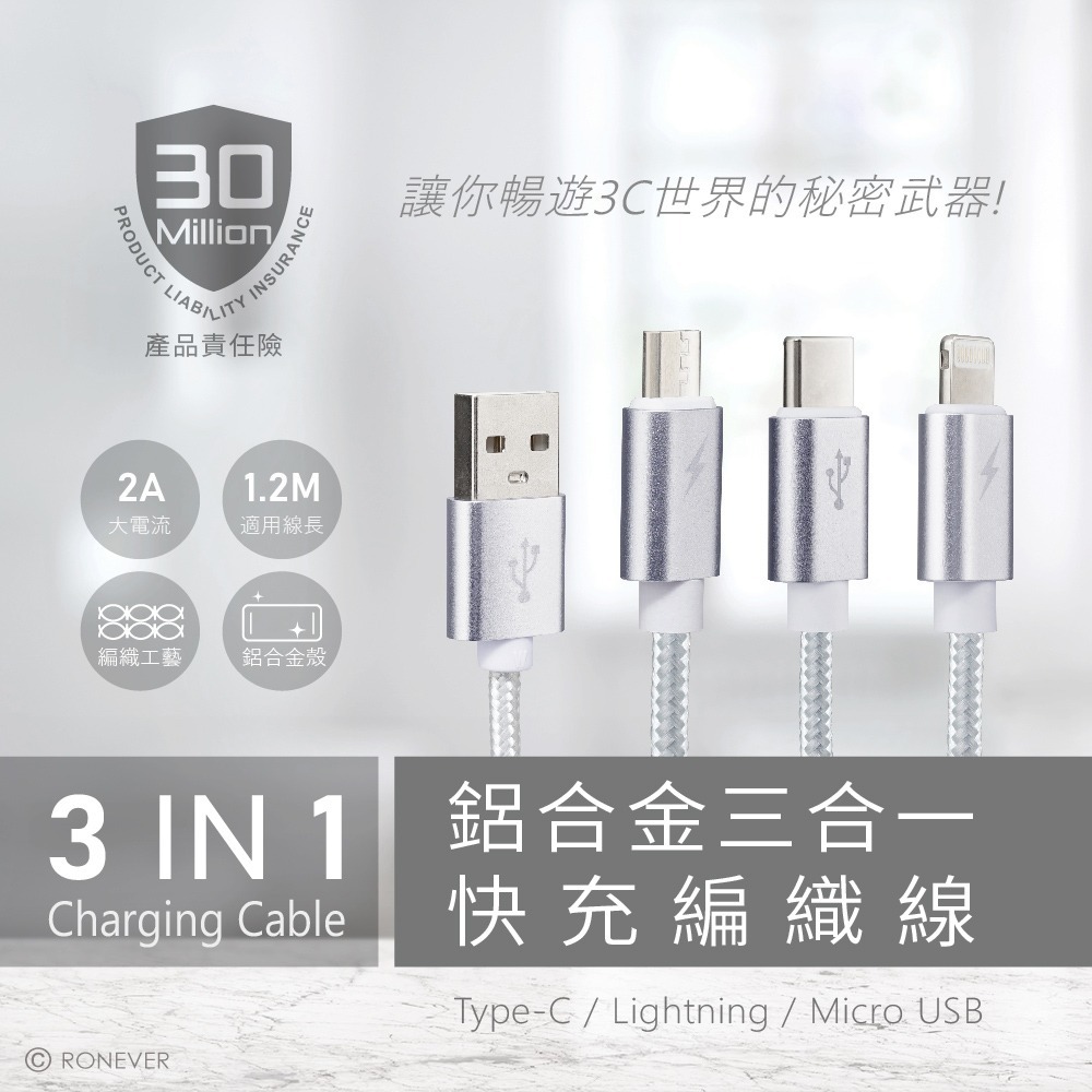 • 三合一快充線