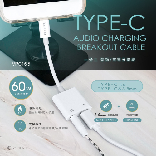 • Type-C to Type-C & 3.5mm 充電聽歌同時滿足。