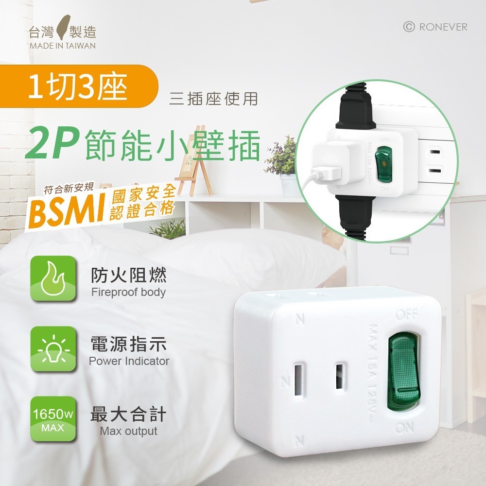 • 精巧外型,擴充插座又不佔其他插座孔位。