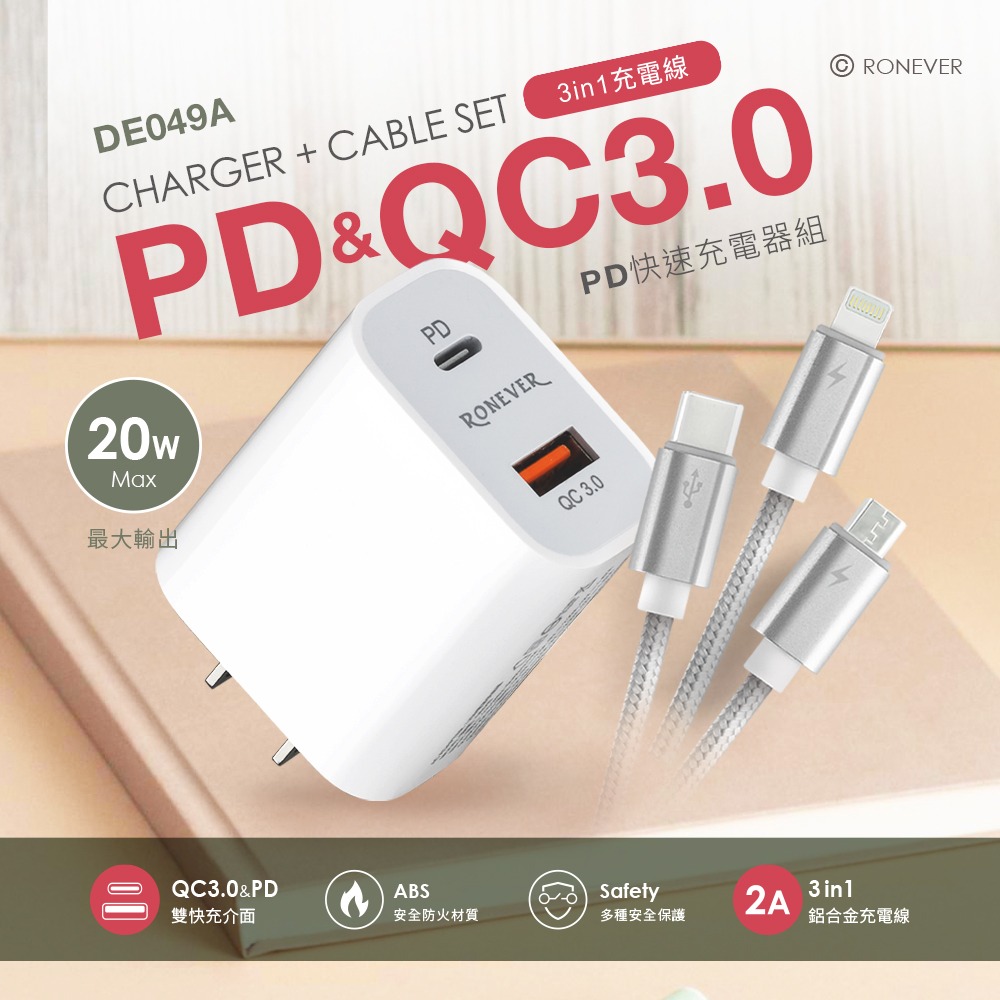 • QC3.0 & PD 雙快充介面設計,最大輸出20W。