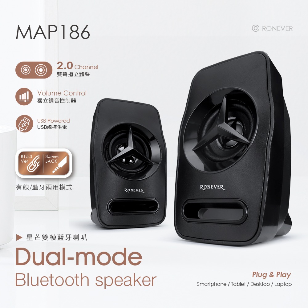 • 雙用設計,可連接藍牙或插入音訊,適用多種設備。