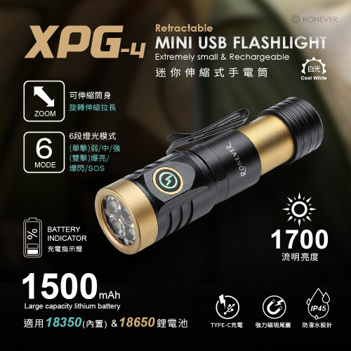 • 原用18350電池,旋轉伸縮筒身,可裝18650電池。