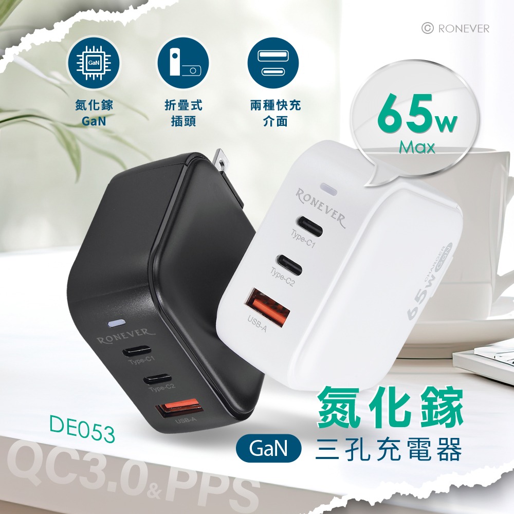 • 65W大功率三口輸出,智慧晶片保護,快充不傷機。