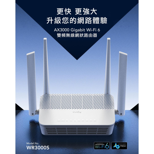 • 3000 Mbps的Wi-Fi速率享受4K高畫質影片及遊戲體驗。