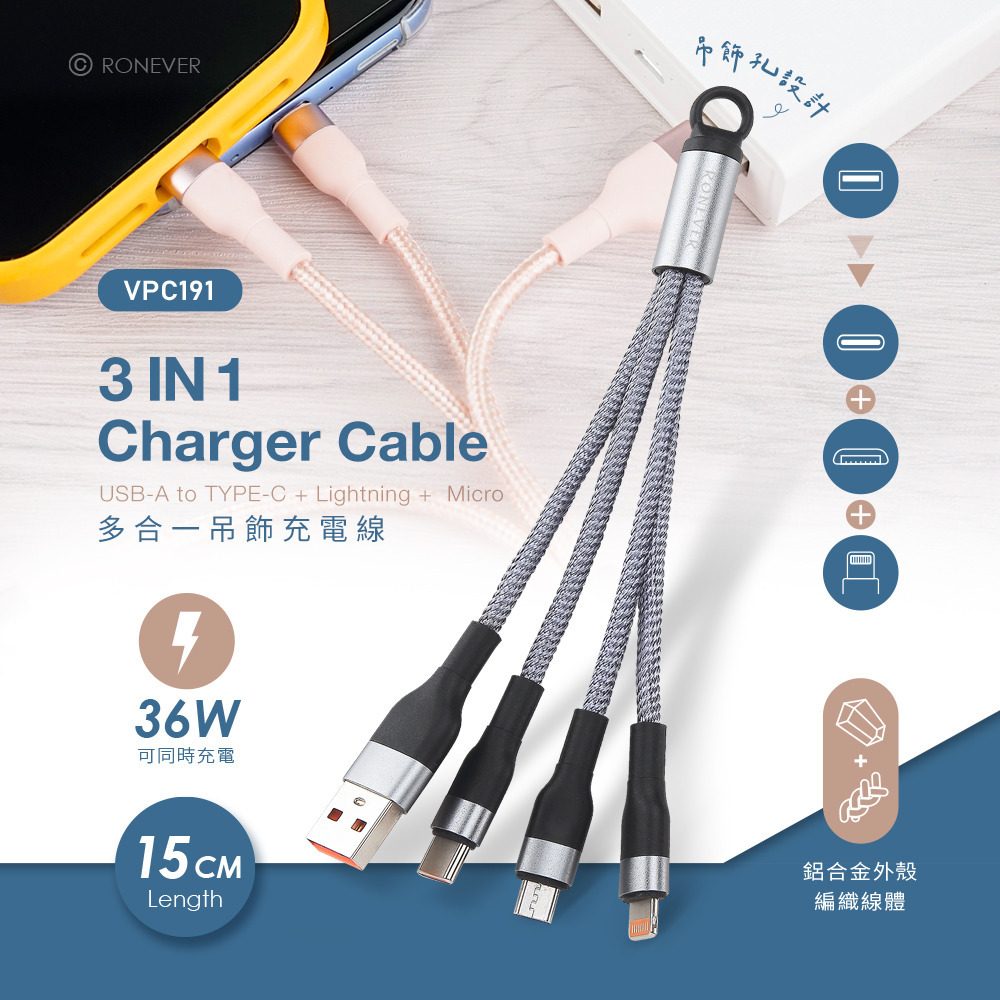 • 三合一隨身充電線,無傳輸功能。