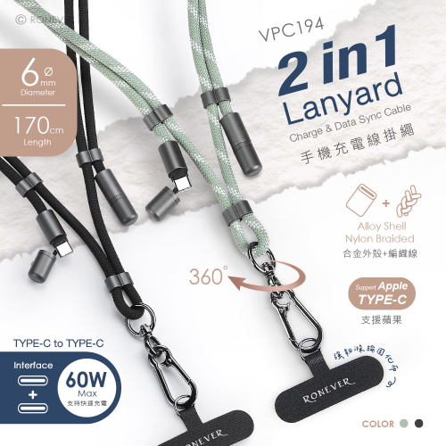 • 2in1掛繩+充電線&資料傳輸,一線雙用,支援多種設備,戶外旅遊必備。