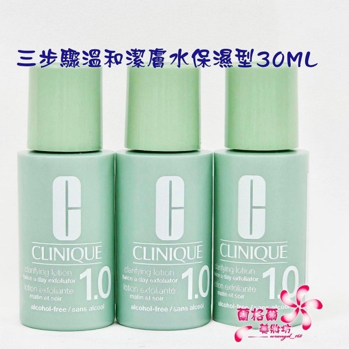 《蘭格爾美妝》全新CLINQUE 倩碧 三步驟溫和潔膚水保濕型1.0 30ML~無酒精成份~專櫃品~化妝水~隨貨附發票