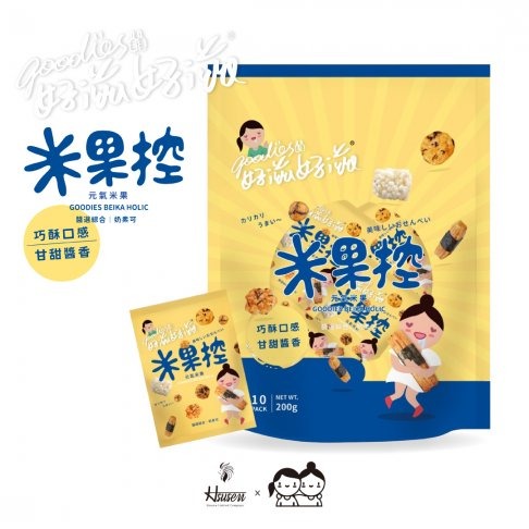 另外,我們對包裝特別講究,採用了第一眼看起來非常可愛設計並使用材質較厚的鋁袋提升米果的保鮮度。一袋內有10小包的貼心設計即時享用不必等。