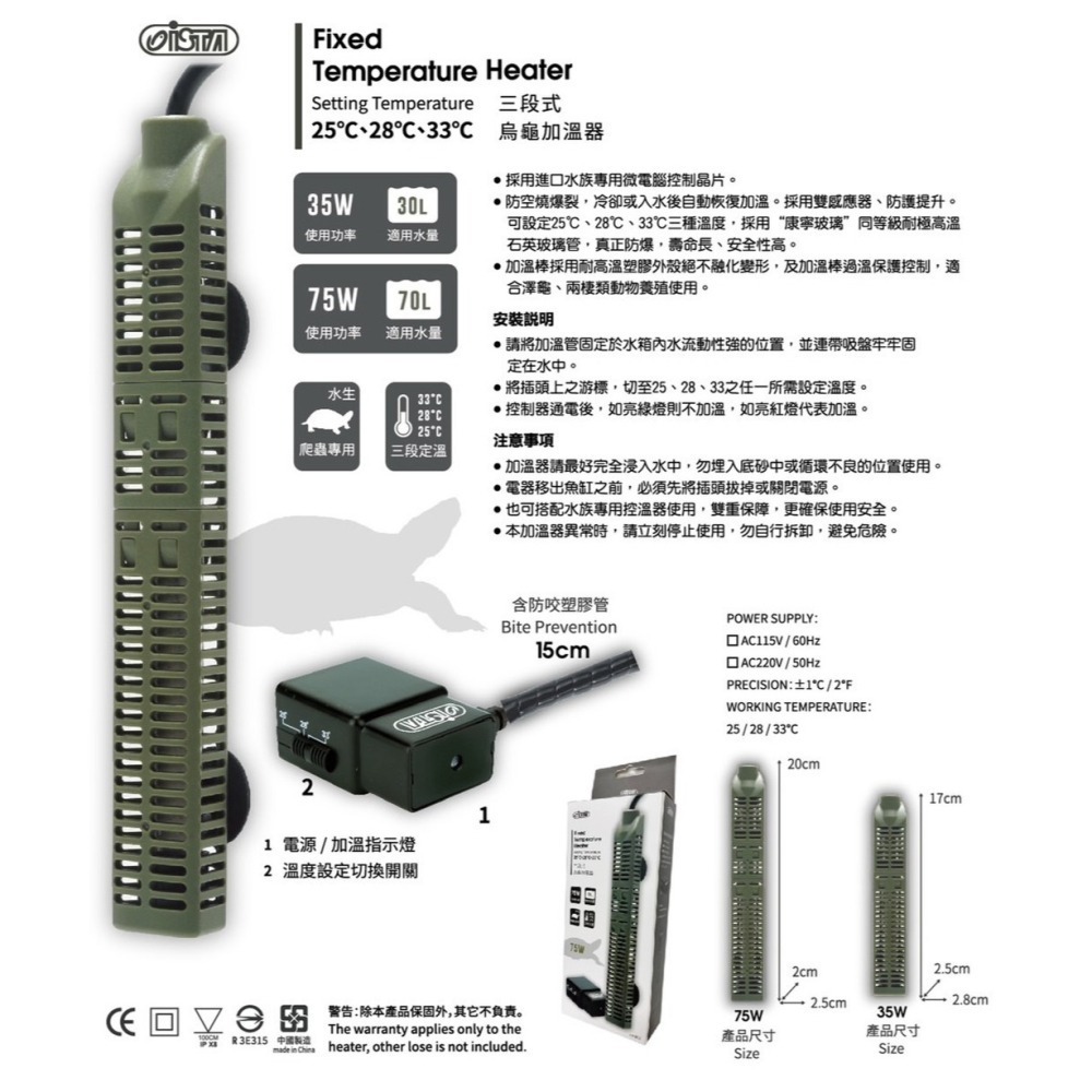 ● 加溫棒採用耐高溫塑膠外殼絕不融化變形,及加溫棒過溫保護控制,適合澤龜、兩棲類動物養殖使用。