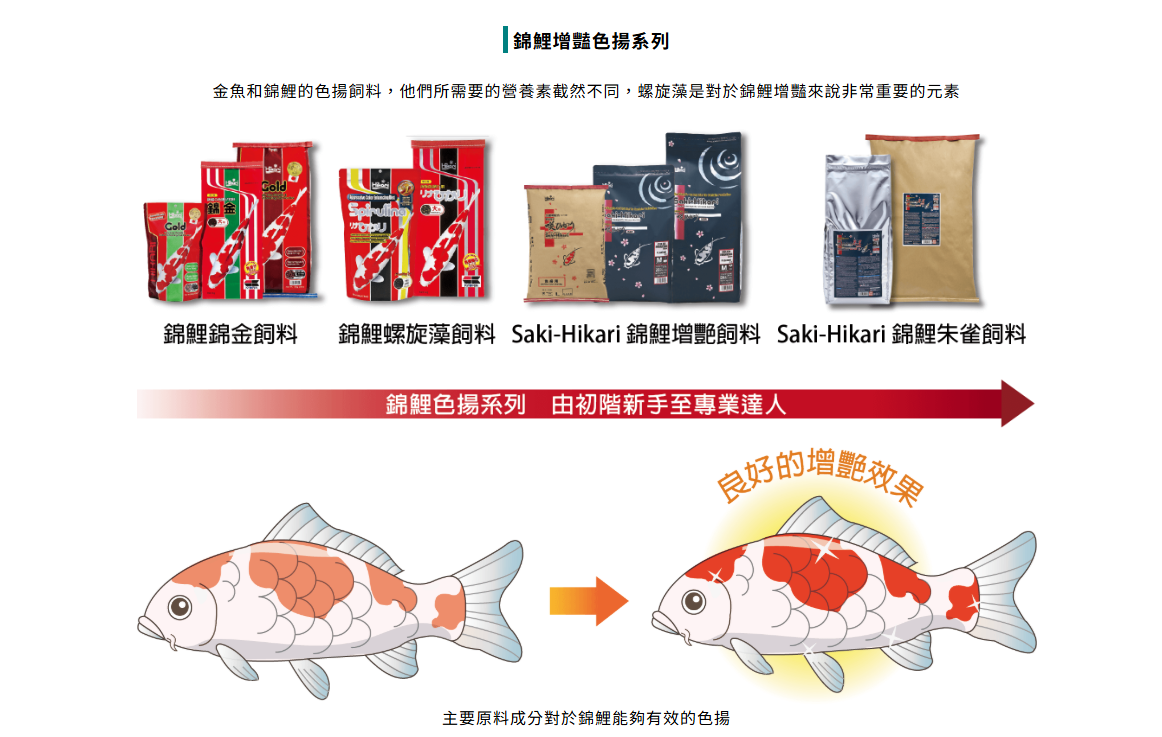 ● 適用於各種錦鯉、促進增豔色揚。