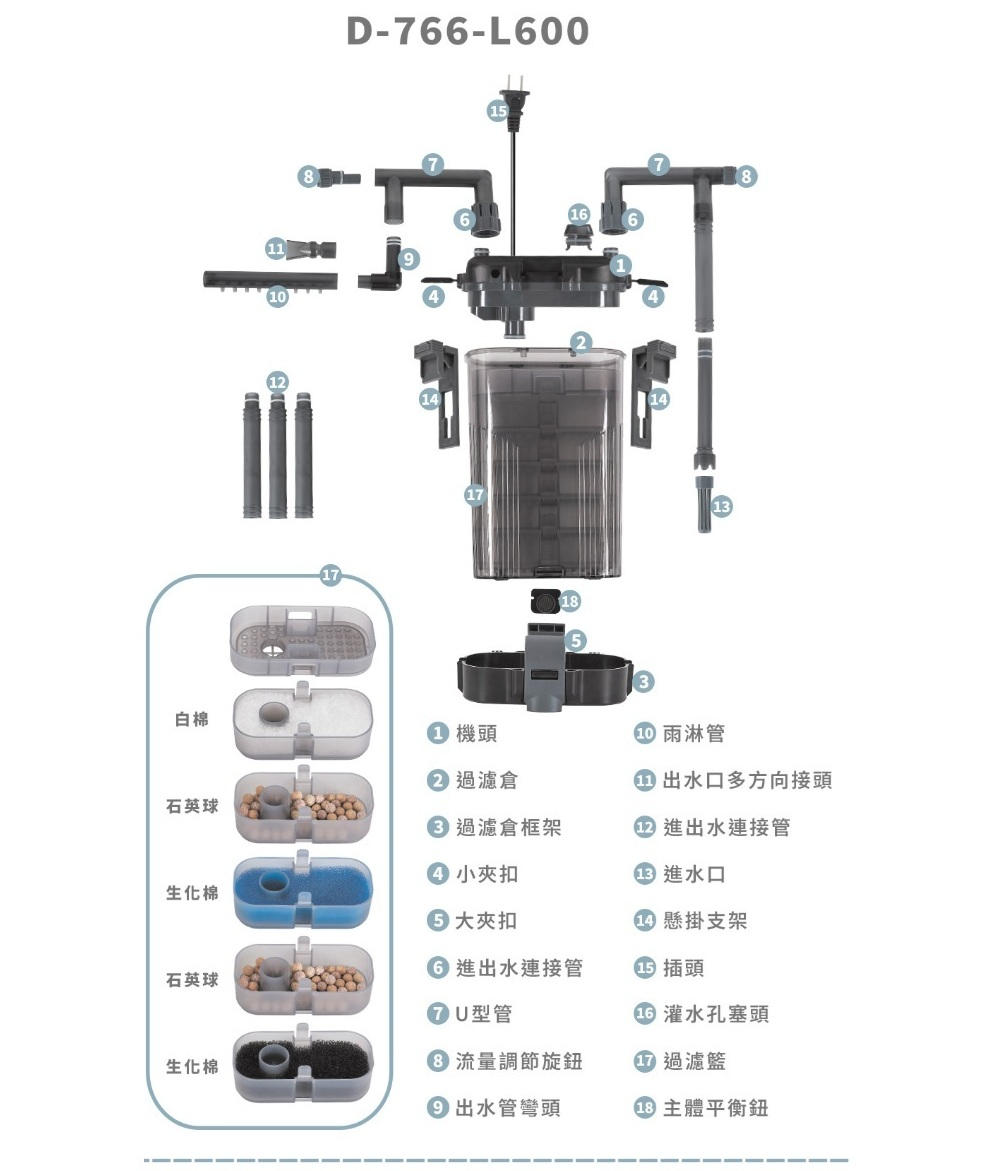 ②【D-766-L600:小型桶式過濾器 L 】- 五層過濾盒