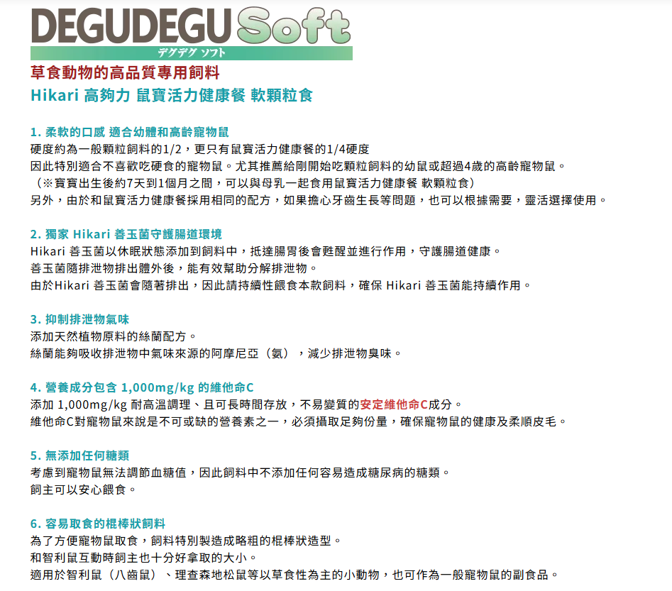 ● 柔軟的口感 適合幼體和高齡寵物鼠
