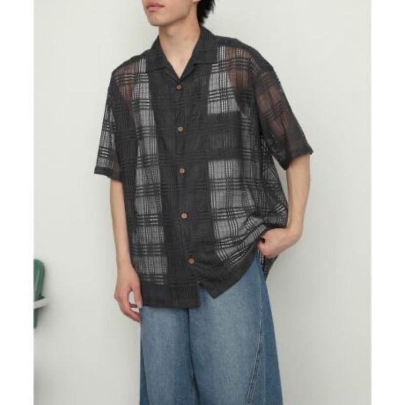|上衣|現貨數量有限!男女皆宜 全新 sense of place 短袖格紋蕾絲襯衫外搭 日本品牌 情侶款 UR