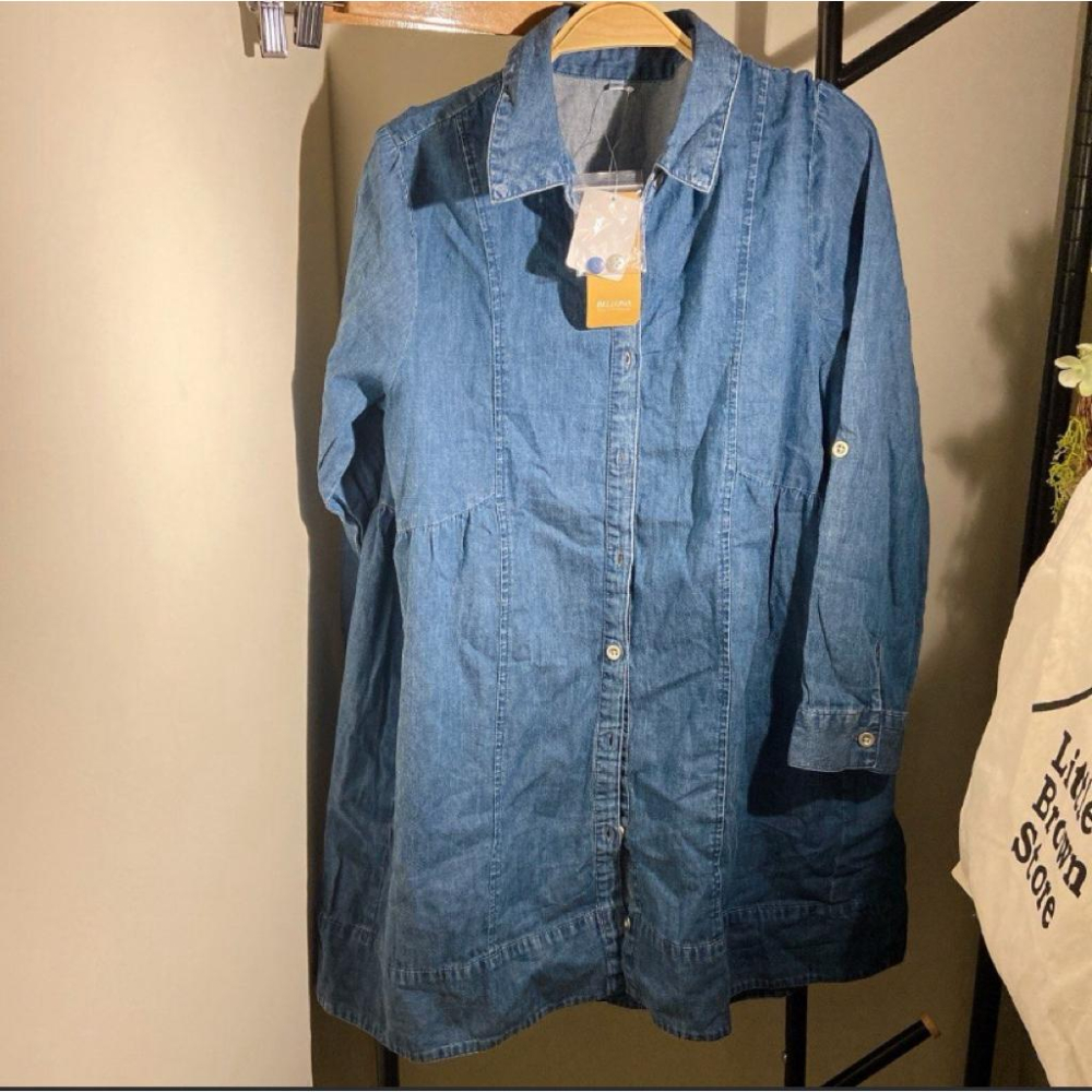 |上衣洋裝|出清!!!全新含吊牌 日牌藍色牛仔棉長袖襯衫式洋裝 可收袖設計 日本日單夏季輕便休閒好搭 M碼