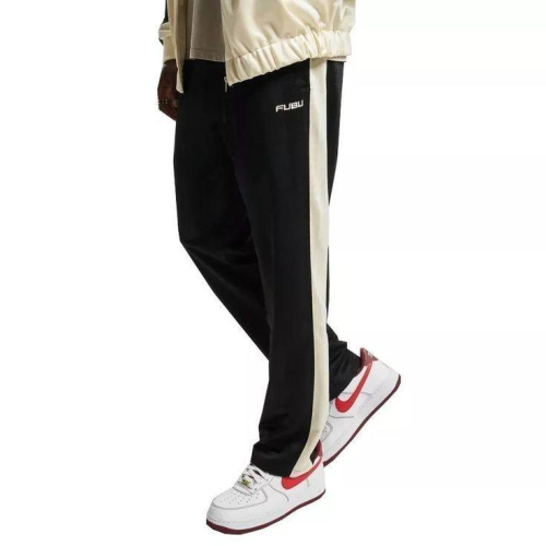 |長褲|美國嘻哈時尚品牌 FUBU 黑色側邊米白色拼接撞色設計休閒褲 運動褲長褲 舒適慢跑褲 現貨僅一件 街頭饒舌潮牌