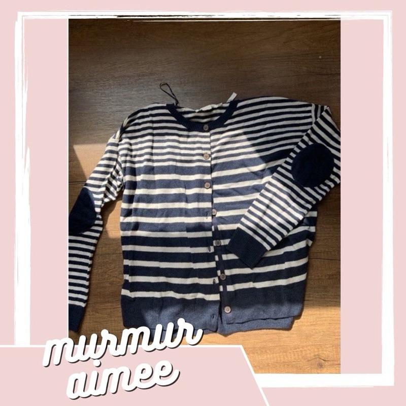 |外套|H&M 法式羊毛藍色條紋開衫毛衣外套 針織毛衣 袖子補丁設計 針織外套 近2000 瑞典品牌 HM