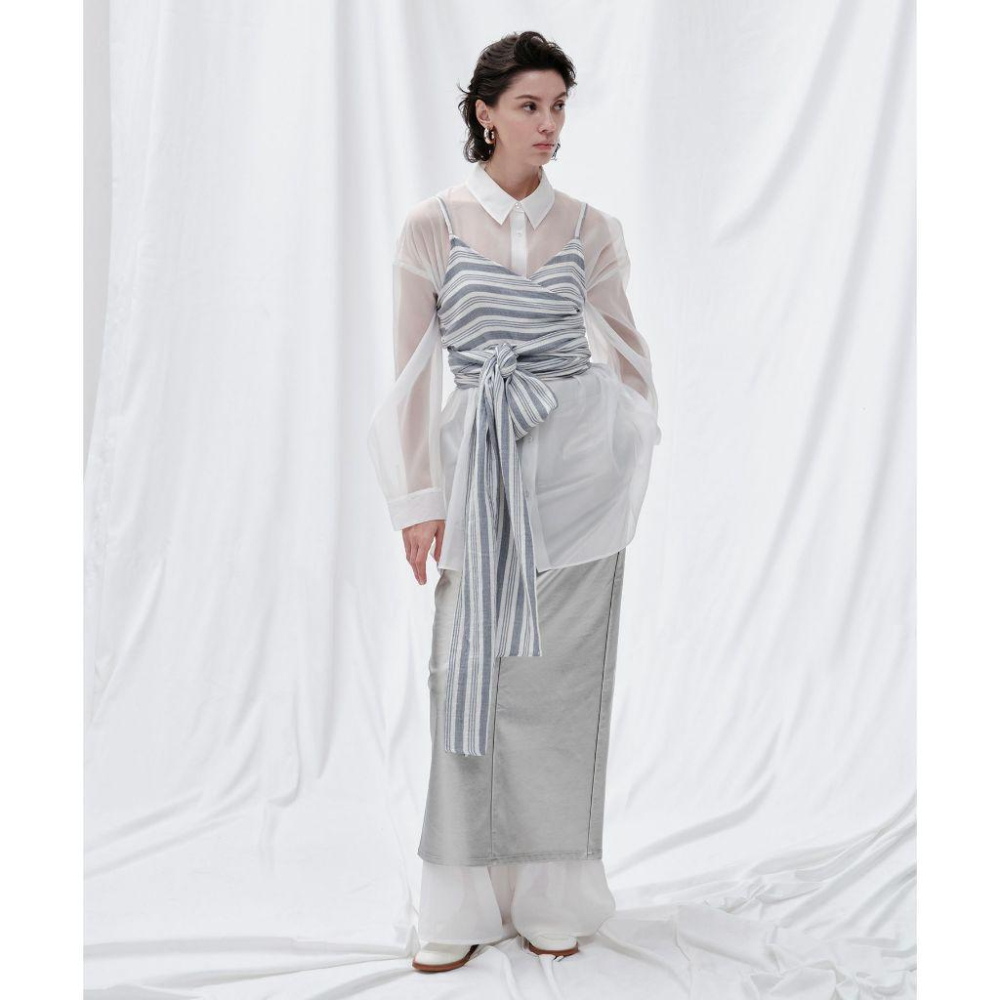 |半裙|獨家 僅一件 日本貴牌 AKTE 銀色皮質長裙 人造皮革工字裙 直筒裙 柔軟 日貨 日牌 全現貨 yae