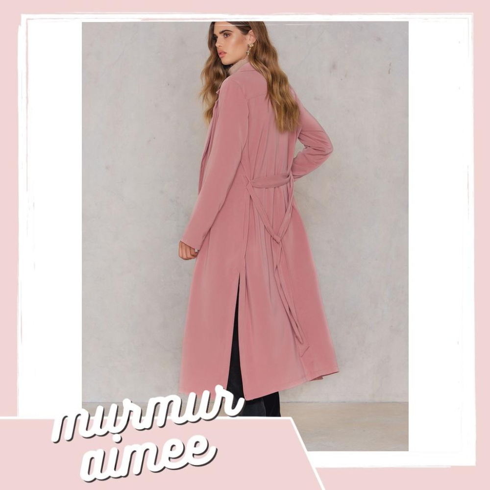 |風衣外套|NA-KD 粉紅色長款西裝領風衣 側開叉 北歐瑞典潮牌 ig網紅愛牌 時尚部落格主最愛 EU36