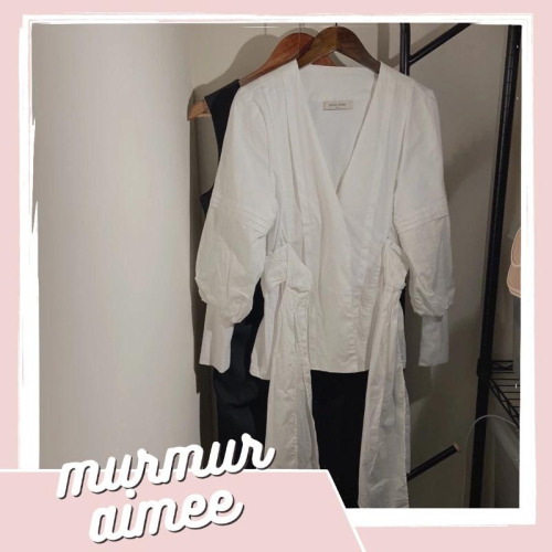 |上衣|獨家 Jazmin Chebar 阿根廷設計師 白色V領微泡泡袖綁帶 滿滿設計感長袖上衣 襯衫 國外購入