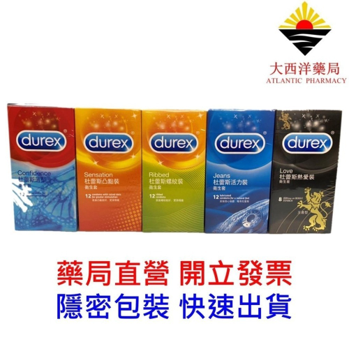 品名:杜蕾斯薄型衛生套 許可證核准字號:衛署醫器輸字第010445號 製造日期:製造日期會因庫存批次而有所不同,請詳見產品包裝標示 保存期限:5年 注意事項:「消費者使用前應詳閱產品說明書」 品名:杜蕾斯螺紋裝衛生套 許可證核准字號:衛署醫器輸字第010429號 製造日期:製造日期會因庫存批次而有所不同,請詳見產品包裝標示 保存期限:5年 注意事項:「消費者使用前應詳閱產品說明書」� 品名:杜蕾斯凸點裝衛生套 許可證核准字號:衛署醫器輸字第021132號 製造日期:製造日期會因庫存批次而有所不同,請詳見產品包裝標示 保存期限:5年 注意事項:「消費者使用前應詳閱產品說明書」� 品名:杜蕾斯熱愛裝衛生套 許可證核准字號:衛署醫器輸字第018586號 製造日期:製造日期會因庫存批次而有所不同,請詳見產品包裝標示 保存期限:5年 注意事項:「消費者使用前應詳閱產品說明書」� 品名:杜蕾斯活力裝衛生套 許可證核准字號:衛署醫器輸字第010430號 製造日期:製造日期會因庫存批次而有所不同,請詳見產品包裝標示 保存期限:5年 注意事項:「消費者使用前應詳閱產品說明書」� 藥局許可執照所載藥局名稱:大西洋藥局 藥局地址:臺中市北區北平路二段28號1樓 藥局許可執照字號:中市藥局字第5903260930號 食品業者登錄字號:B-200201681-00000-8 藥局諮詢專線:04-22932469 營業時間:週一至週六 10:00-23:00 備注: 所有商品皆有完善的售後服務,購買前的任何疑問,或購買後的任何問題,都歡迎私訊, 我們提供最專業的諮詢服務,幫您解答任何問題,或依照您的情況需求,幫您挑選搭配真正適合您的產品。