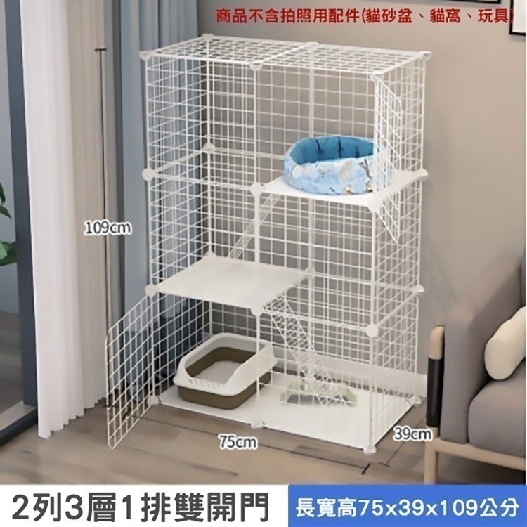 鐵網X17 (35X35公分)、門網X3、底板X4、卡扣X24、爬梯X2、束帶數個、小木槌X1