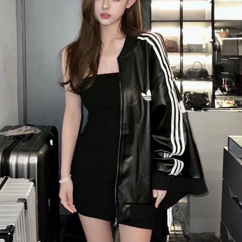 Adidas 皮衣 外套 二色都好好看 復古三葉草 實穿百搭 私留 超級喜歡💕經典三條槓美式復古棒球服外套 男女同款  運動字母時尚夾克上衣