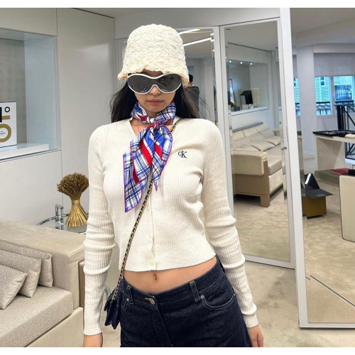 blackpink Jennie CK針織衫 白色刺繡修身針織小外套 上衣 開襟衫 基礎款百搭 永不退流行的不敗單品