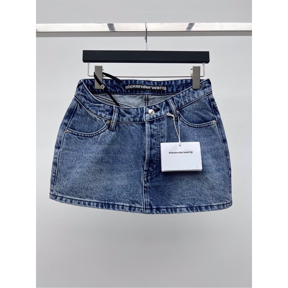 Alexander Wang 亞歷山大王 掛腰牛仔短裙 裙子 半裙 大王真的太會了!性感拿捏的剛剛好!可調節水鑽織帶掛腰設計 腰部傾斜版型剪裁 完美拉長腿部比例 基本款必備