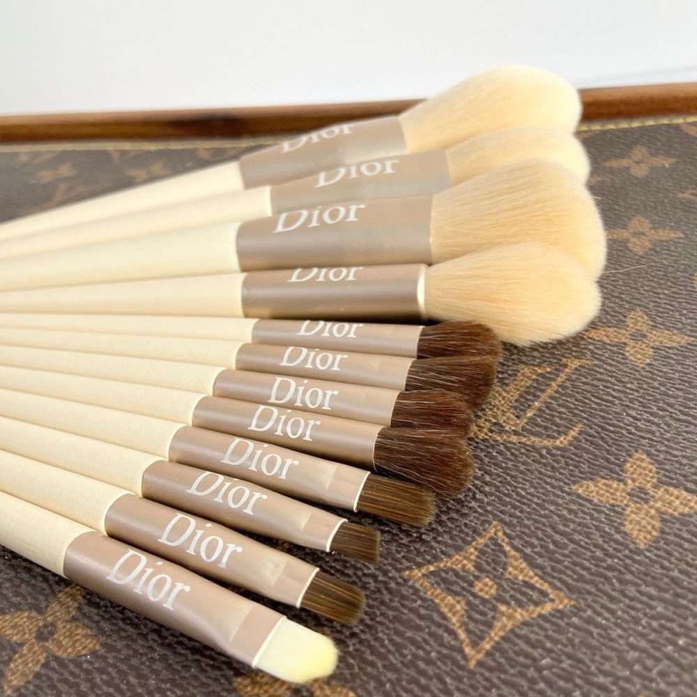 Dior CD 化妝12套裝莫蘭迪眼影全套柔軟粉刷腮紅散粉玉米動物一整套刷子 甜心粉光腮紅刷及眼影刷 漂亮粉色細桿刷 刷